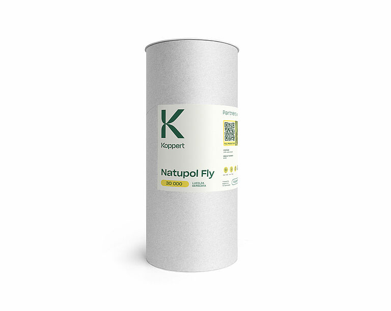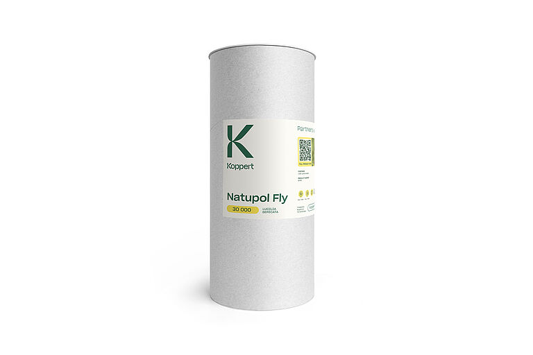 Natupol Fly is verpakt in een kartonnen koker met een plastic deksel. De vliegenpoppen worden gemengd met zaagsel om de warmteproductie te minimaliseren en de vocht- en geurabsorptie te verhogen. De doelgerichte verpakkingsmethode van Natupol fly geeft: