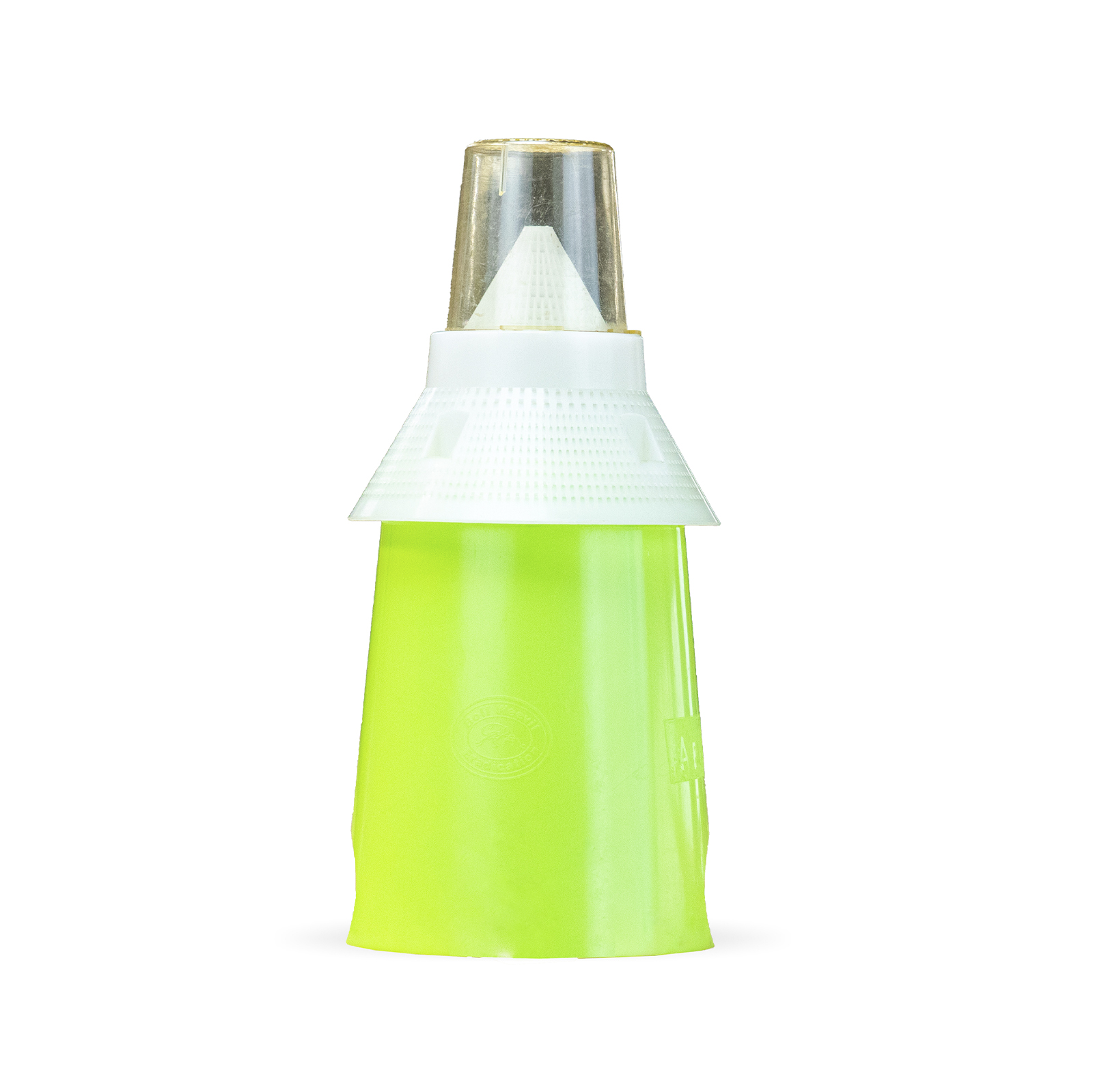 - Bevestig de doorzichtige bovenkant aan de trechter met een draaibeweging waarbij de gleufjes op één lijn liggen
