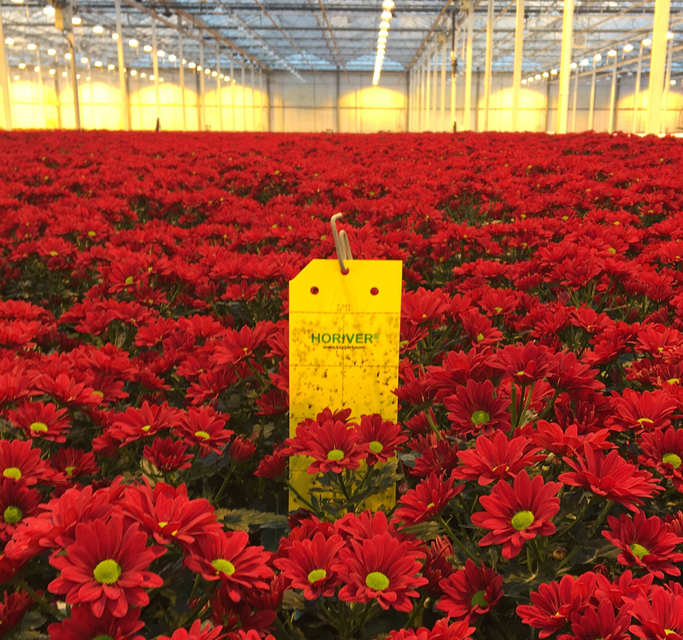 Tripsbestrijding in chrysant luistert uitermate nauw. Bij rode chrysant ligt de lat extra hoog: aangezien zelfs het kleinste zilvergrijze vlekje meteen in het oog springt, kan geen enkele trips worden getolereerd. Bij Kwekerij Bos Bloemen in ’s Gravenzande, waar men de rode Barolo-chrysanten teelt, was vorig jaar behoorlijk wat werk aan de winkel: de tripsdruk was hoog.