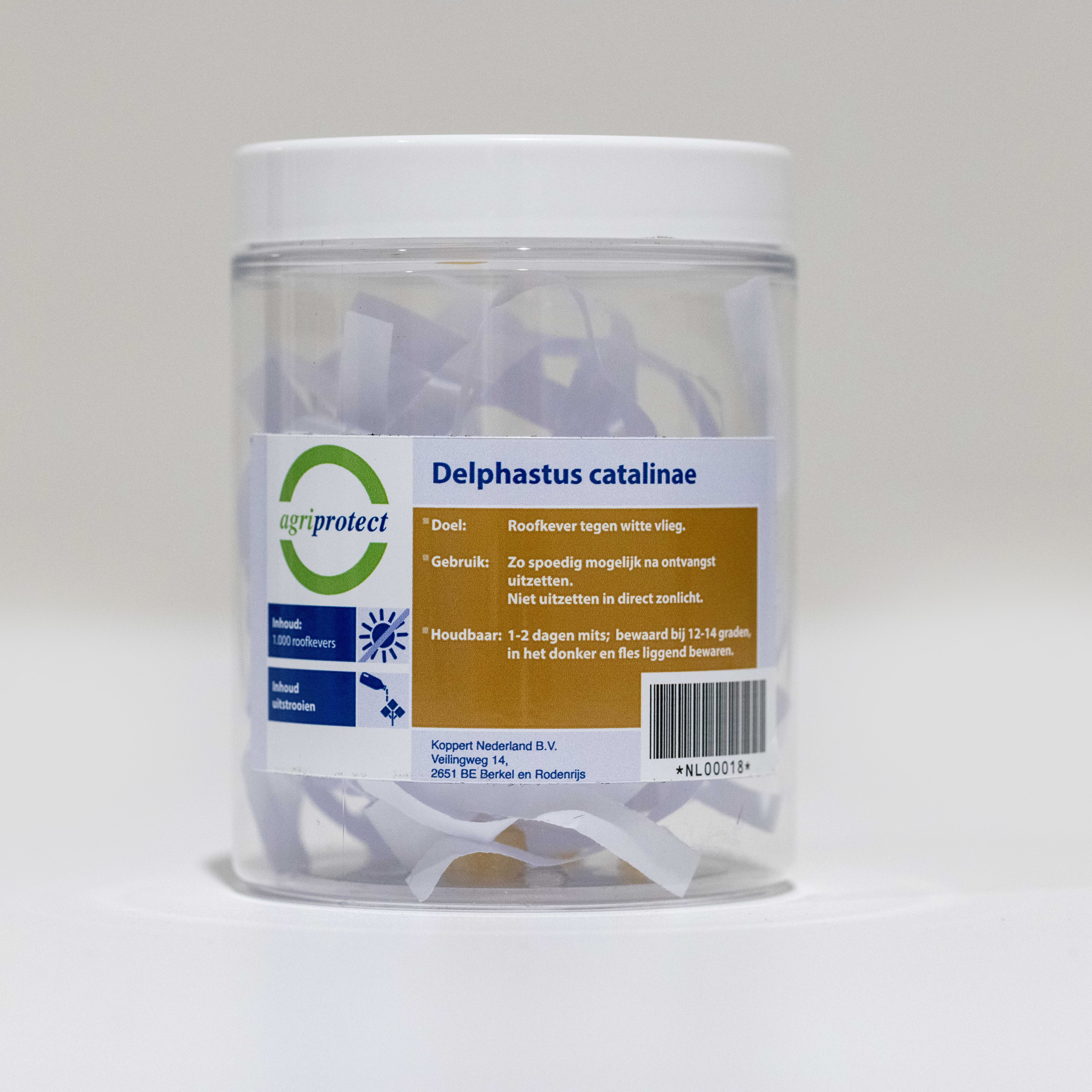 De minimumtemperatuur voor het succesvol gebruik van Delphastus catalinae is 20°C. Delphastus is het meest effectief bij temperaturen tussen 22 en 30°C.