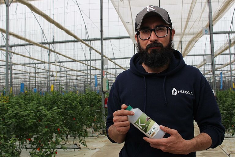 "We gingen op zoek naar alternatieven en kwamen terecht bij Koppert... Aan het begin van de biologische bestrijding lieten hun Gewasadviseurs ons zien wat het bereik was van de mogelijkheden voor onze gewassen. Nadat ze de relevante onderzoeken en tests hadden uitgevoerd, adviseerden ze ons de producten te gebruiken die tot nu toe zeer goed hebben gewerkt," aldus Martin Salazar, productiemanager bij HyFood.