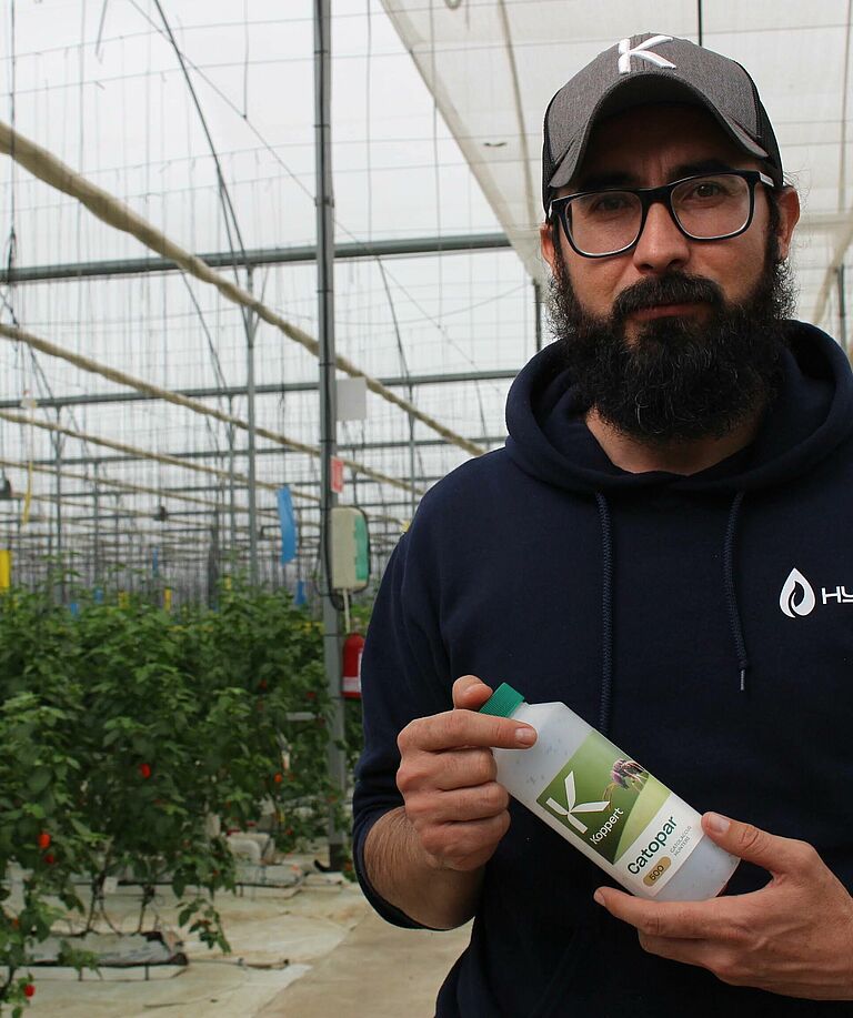 "We gingen op zoek naar alternatieven en kwamen terecht bij Koppert... Aan het begin van de biologische bestrijding lieten hun Gewasadviseurs ons zien wat het bereik was van de mogelijkheden voor onze gewassen. Nadat ze de relevante onderzoeken en tests hadden uitgevoerd, adviseerden ze ons de producten te gebruiken die tot nu toe zeer goed hebben gewerkt," aldus Martin Salazar, productiemanager bij HyFood.