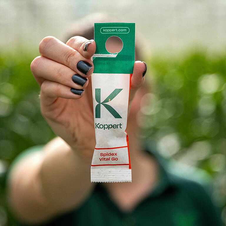 De zakjes Spidex Vital Go bevatten de roofmijt Phytoseiulus persimilis. Deze roofmijt is de natuurlijke vijand van de spintmijt. Hij eet spint in elk stadium, maar heeft een voorkeur voor de eieren. Hasan: “De spint krijgt zo minder kans zich te reproduceren. Spint is zeer gevoelig en bij de juiste temperaturen kan deze zich explosief verspreiden. Hoe warmer, hoe beter de spint gedijt. Zelfs de windrichting is van invloed, ook binnen in de kas. Daarnaast is de mens een bron van verspreiding.