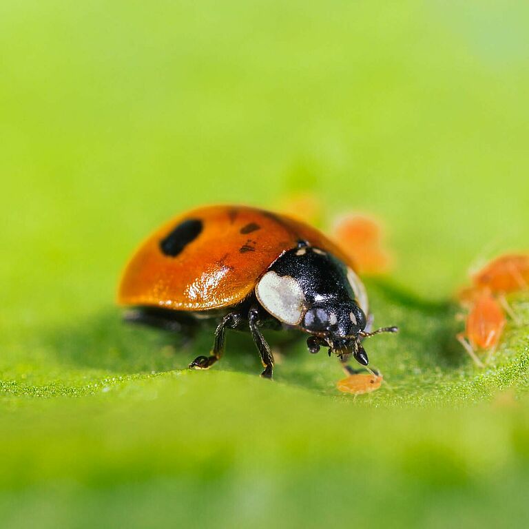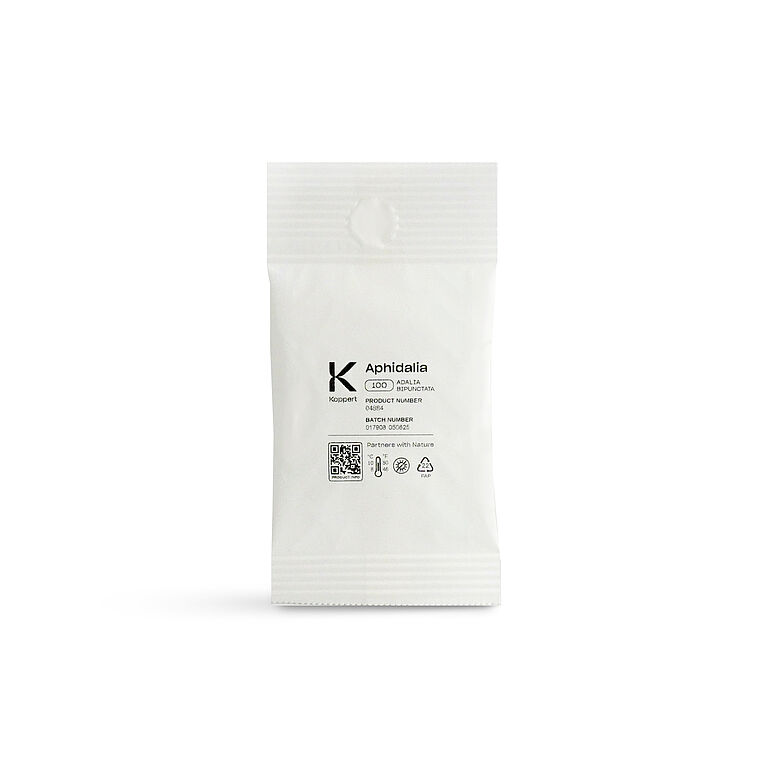 Adalia bipunctata voedt zich met alle soorten bladluizen, maar het product Aphidalia is speciaal ontwikkeld voor de bestrijding van bladluizen in bomen.