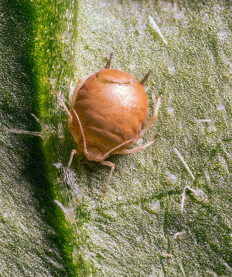 Vrouwtjes van de sluipwesp Aphidius spp. leggen een eitje in een bladluis. Daaruit komt een larve die zich in vier stappen ontwikkelt. Als de larve volgroeid is, maakt ze een cocon in de bladluis. De bladluis zwelt dan op en verandert van kleur: de huid wordt hard en goudbruin. Zo’n dode bladluis noemen we een mummie.