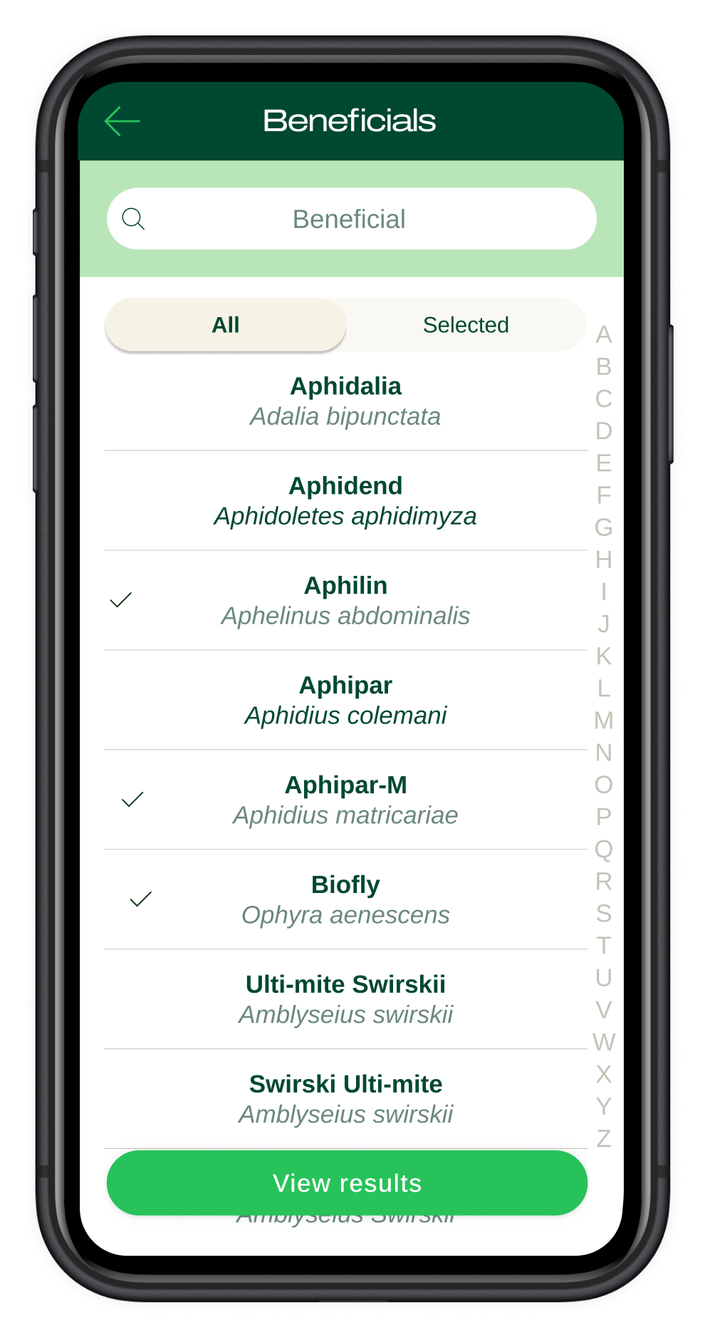 Krijg toegang tot een gedetailleerde database om weloverwogen beslissingen te nemen over de integratie van chemische gewasbescherming met biologische gewasbescherming en natuurlijke bestuiving.