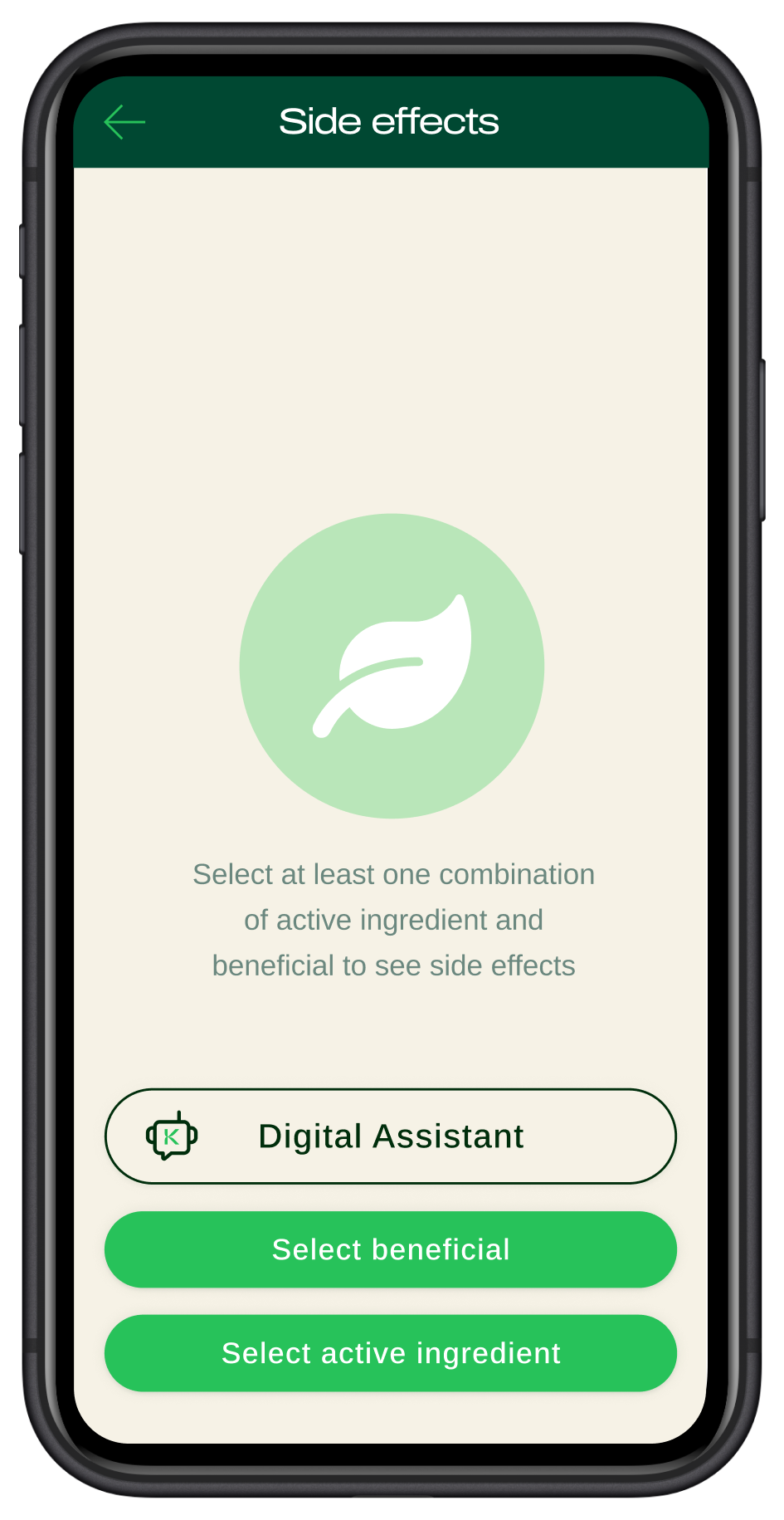 Koppert One Neveneffecten biedt twee handige manieren om toegang te krijgen tot informatie: gebruik de standaard zoekfunctie van de app of raadpleeg de digitale assistent voor advies. Stel gewoon vragen over neveneffecten en ontvang snel nauwkeurige antwoorden ter ondersteuning van weloverwogen besluitvorming. Deze geavanceerde mogelijkheid, gecombineerd met een gebruiksvriendelijk ontwerp, biedt flexibiliteit en stelt u in staat om de methode van uw voorkeur te kiezen om informatie op te vragen.