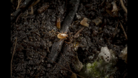 Eieren, larven en poppen van varenrouwmuggen; tripspoppen, Lyprauta-larven.