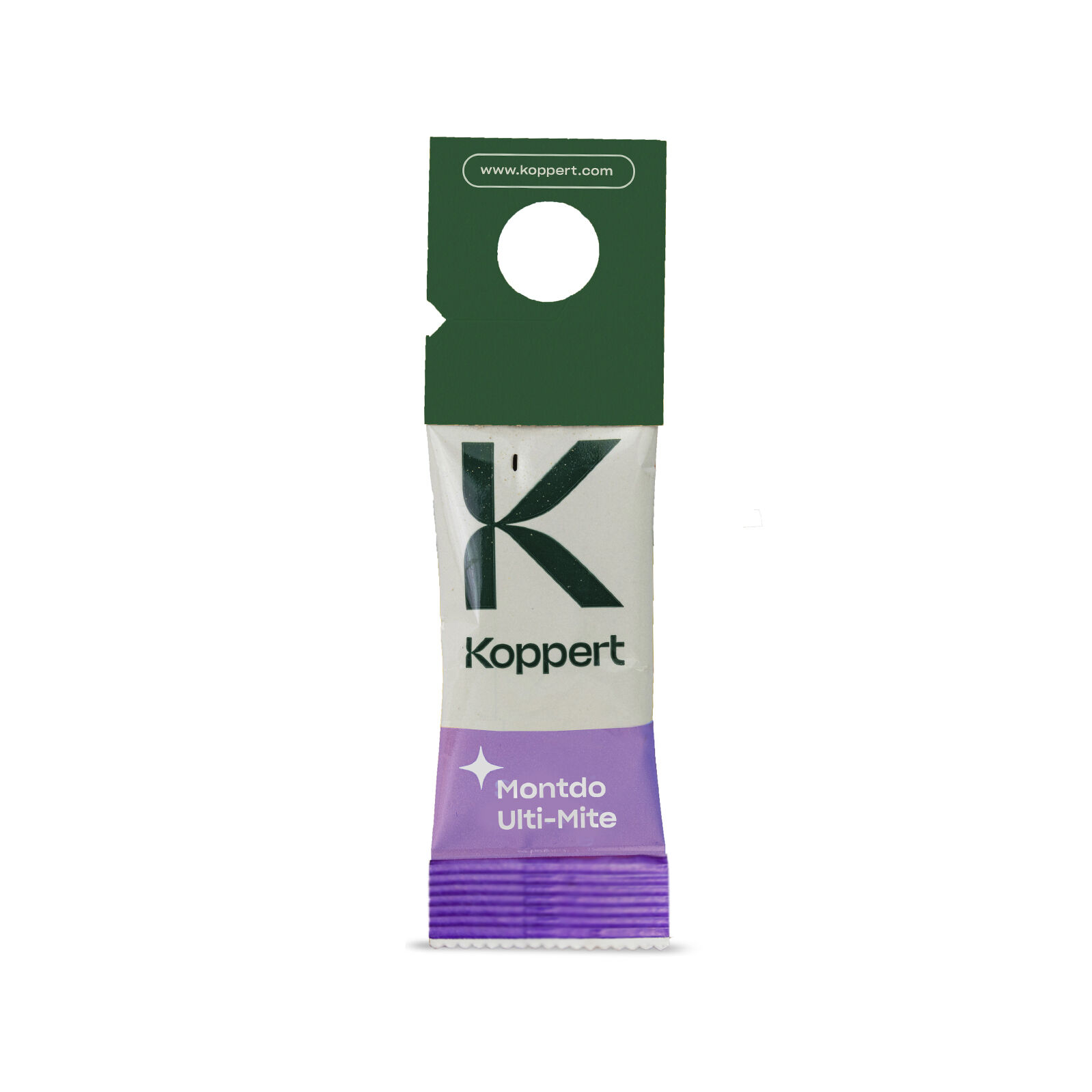 De dosering van Montdo Ulti-Mite is afhankelijk van het klimaat, gewas en plaagdichtheid en moet altijd worden aangepast aan de specifieke situatie. Start de introductie preventief of zodra de eerste plagen in het gewas worden waargenomen. Gebruik minimaal 4.000 zakjes per ha en hang ze gelijkmatig verdeeld in het gewas. Herhaal de introductie na 4 weken als de plaag niet onder controle is. Vraag een Koppert-adviseur of een erkende distributeur van Koppert-producten om advies over de beste strategie voor uw situatie.