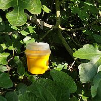 Gebruik de Moskisan-val voor het signaleren en wegvangen van de Middellandse-zeevlieg in combinatie met een soortspecifieke lokstof.