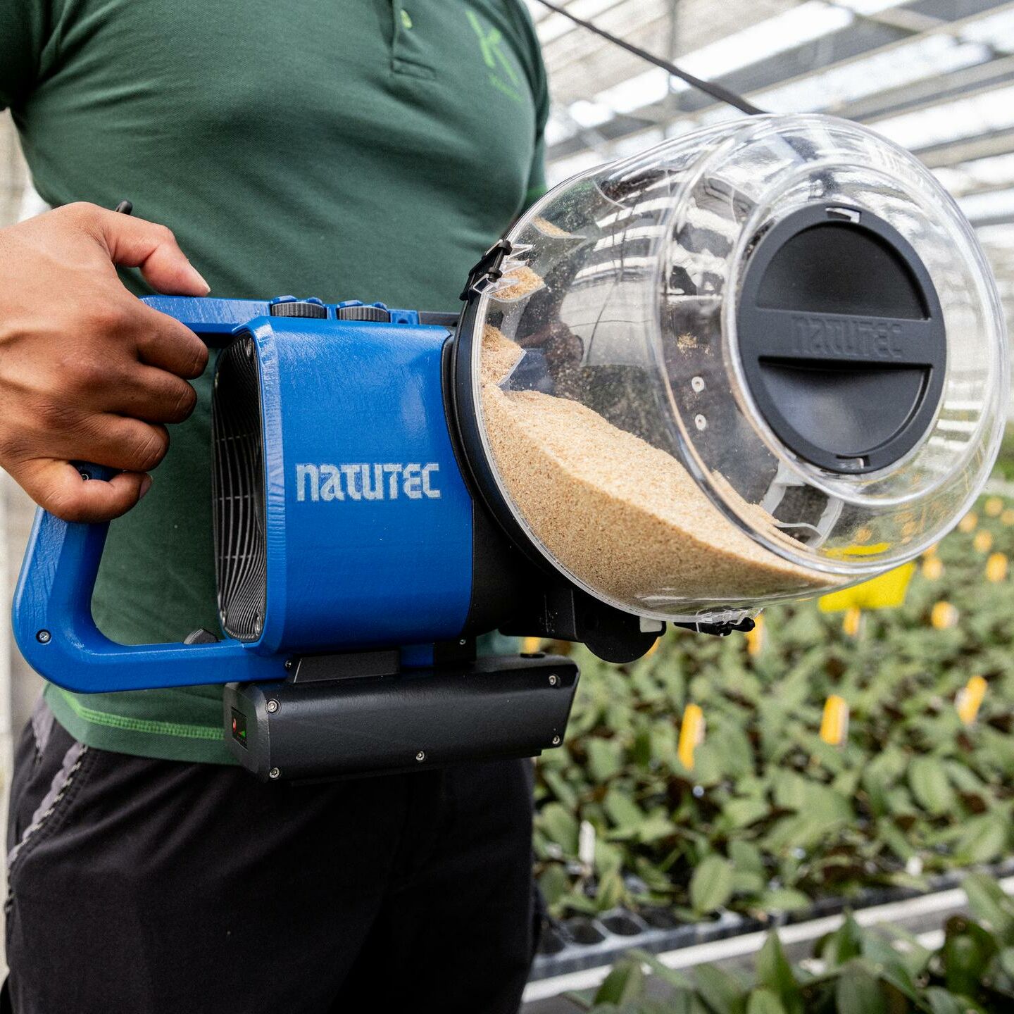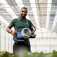 Gebruik de Airobreez voor de verspreiding van natuurlijke vijanden over het gewas. De Airobreez kan zowel gebruikt worden voor verspreiding over het gehele gewas als voor specifieke haarden.