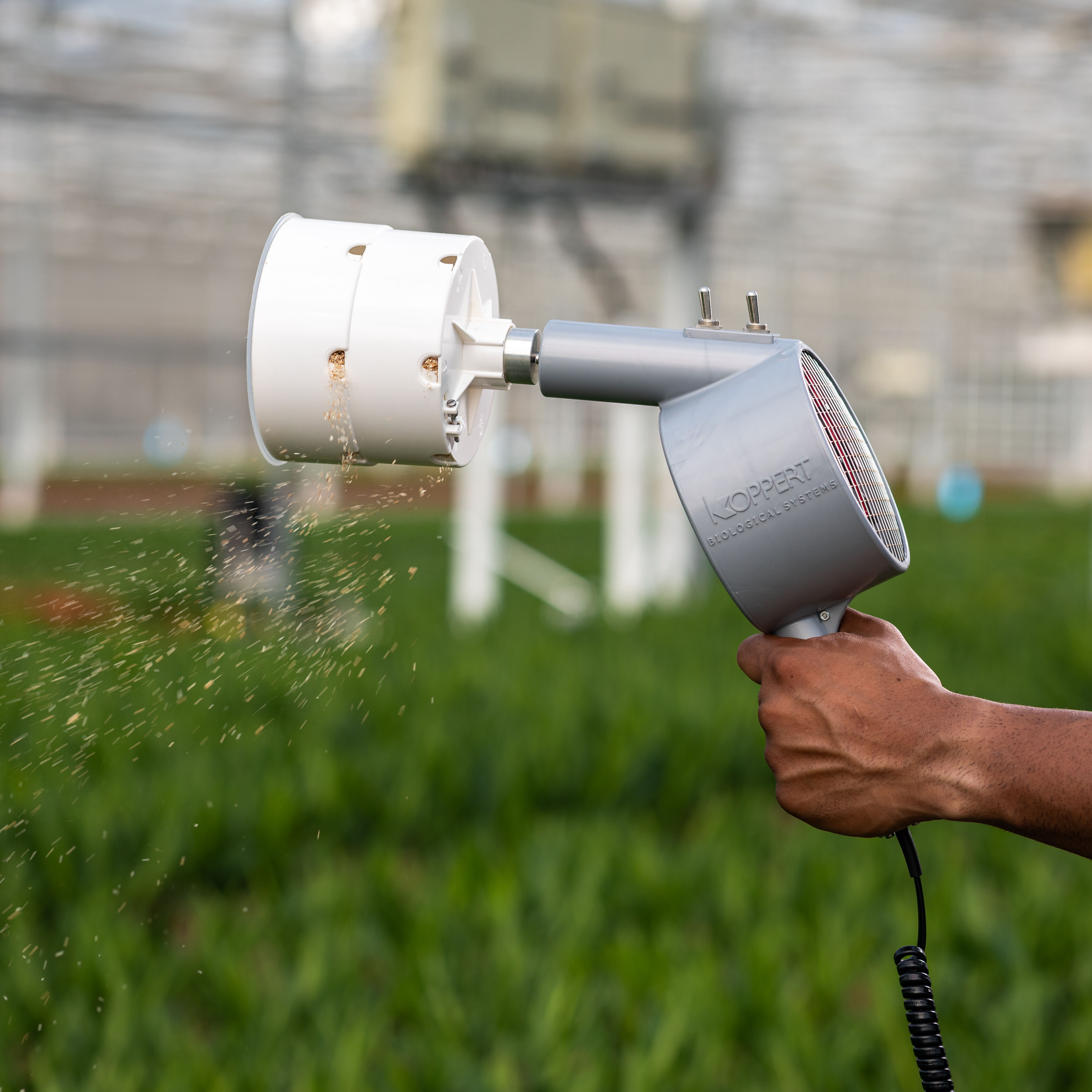 Gebruik de Natutec Mini-Airbug voor de verspreiding van natuurlijke vijanden in het gewas. De Mini-Airbug kan worden gebruikt voor het hele gewas of voor plaatselijke haardbestrijding, evenals voor het verspreiden van Artefeed en Entofood.