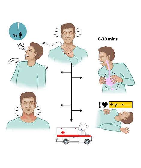 Er worden bij de allergische reactie 4 gradaties onderscheiden. Deze zijn van 1 tot 4 oplopend in
