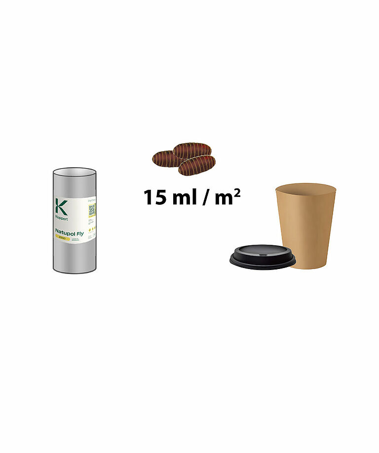 Zet Natupol Fly niet zonder voorbereiding uit in een toepassing met een temperatuur onder 15˚C. De uitkomst is dan onvoorspelbaar en duurt vaak langer dan 1 week. Laat Natupol Fly, in geval van toepassing bij een temperatuur onder 15˚C, eerst afrijpen in een warme omgeving. Plaats Natupol Fly in de toepassing nadat de eerste volgroeide vliegen verschijnen.