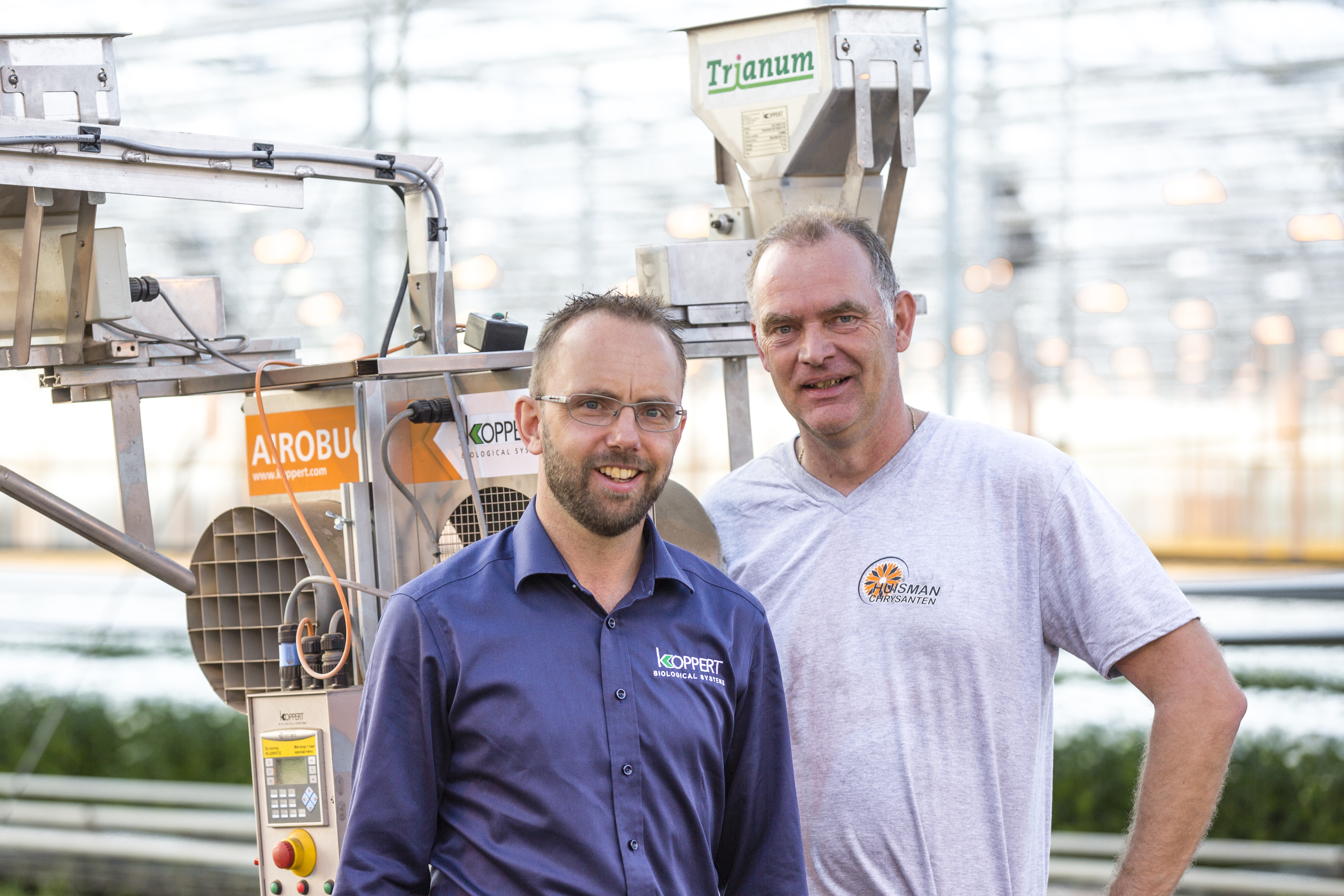 Peter Huisman (rechts) en consultant Arthur Kalkman van Koppert. "Met de aangepaste Airobug krijgen wij Trianum dáár waar wij het willen", aldus Huisman.
