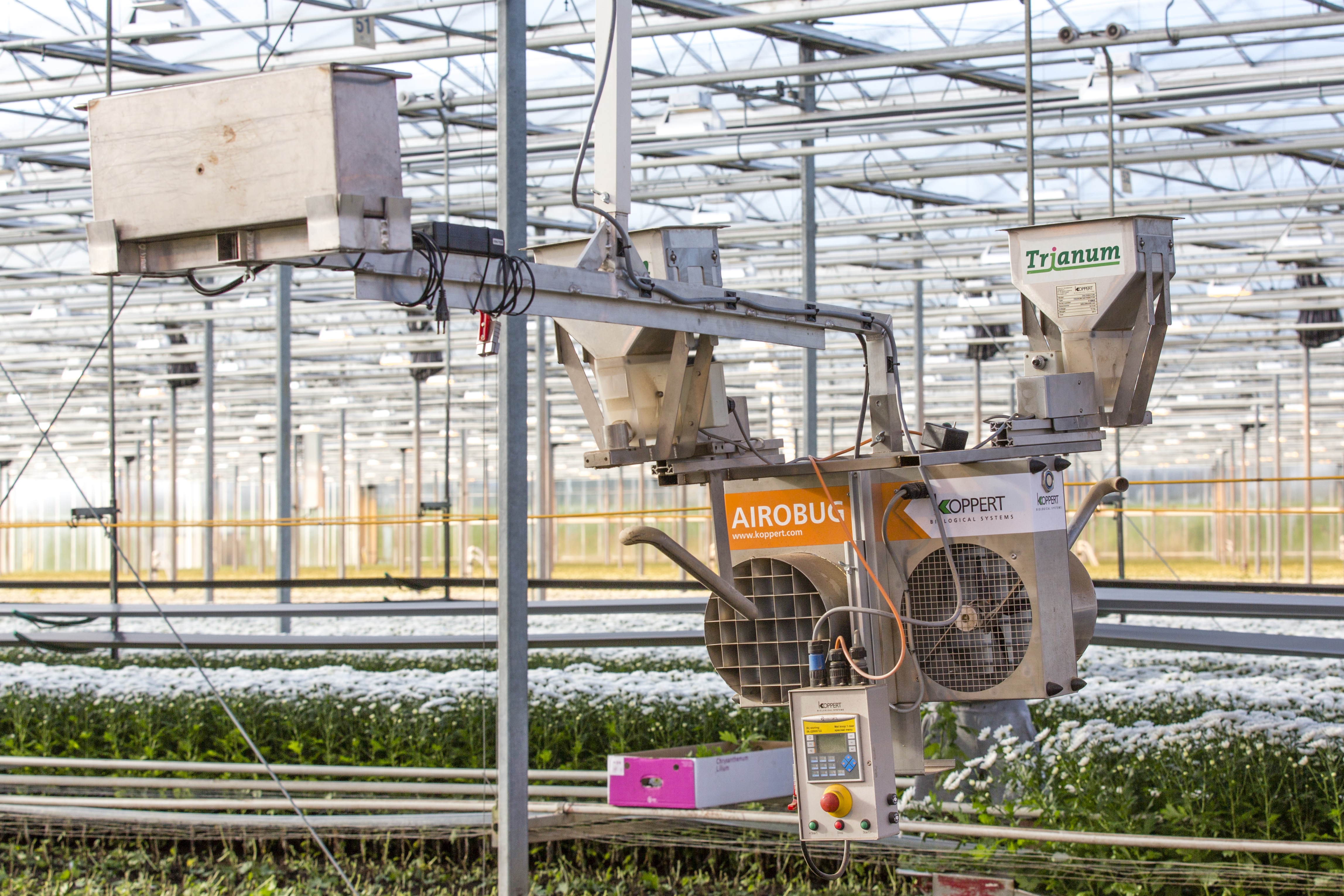 Huisman Chrysanten in Maasdijk houdt van de vernieuwing. Recent nam de onderneming een Airobug in gebruik die door Koppert voor het verstrooien van Trianum-G werd omgebouwd. De ervaringen zijn zonder meer goed.