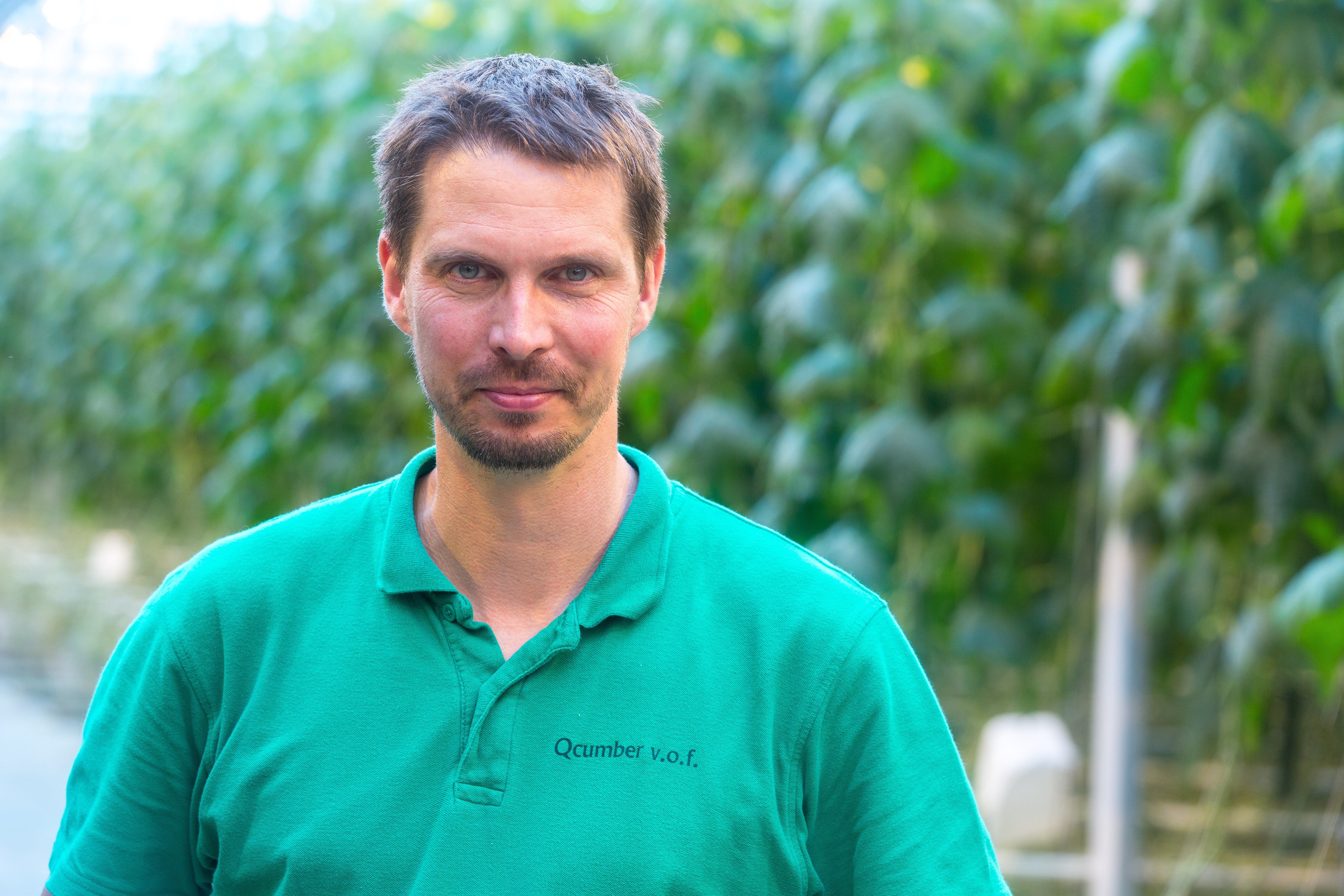 Komkommerteler Kees Hendriks van Qcumber ziet zijn gewasbescherming verschuiven van geïntegreerd naar bijna biologisch. Chemische middelen komen er steeds minder aan te pas. Sinds twee jaar gebruikt hij Trianum om zijn planten ondergronds te beschermen.