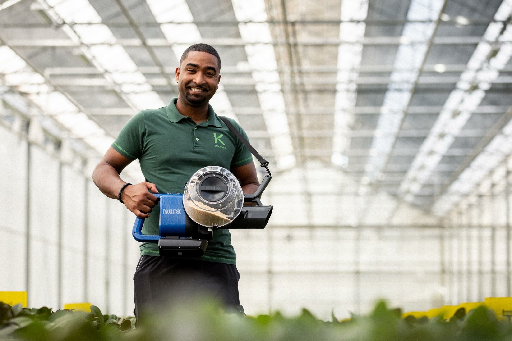 De Airobreez is een handverblazer die een unieke zachte luchtstroom gebruikt om natuurlijke vijanden veilig over gewassen te verspreiden. "We hebben onze nuttige insecten nog nooit in betere conditie of gelijkmatiger verdeeld op hun bestemming zien aankomen," zegt Maikel van Essen, Product Manager bij Koppert. "De Airobreez zet een nieuwe industriestandaard voor handverblazers, niet alleen in prestaties maar ook in gebruiksvriendelijkheid. Door nuttige insecten te verspreiden via een zachte, gecontroleerde luchtstroom, zorgen we ervoor dat de organismen hun bestemming in optimale conditie bereiken, met sterftecijfers onder de 2%."