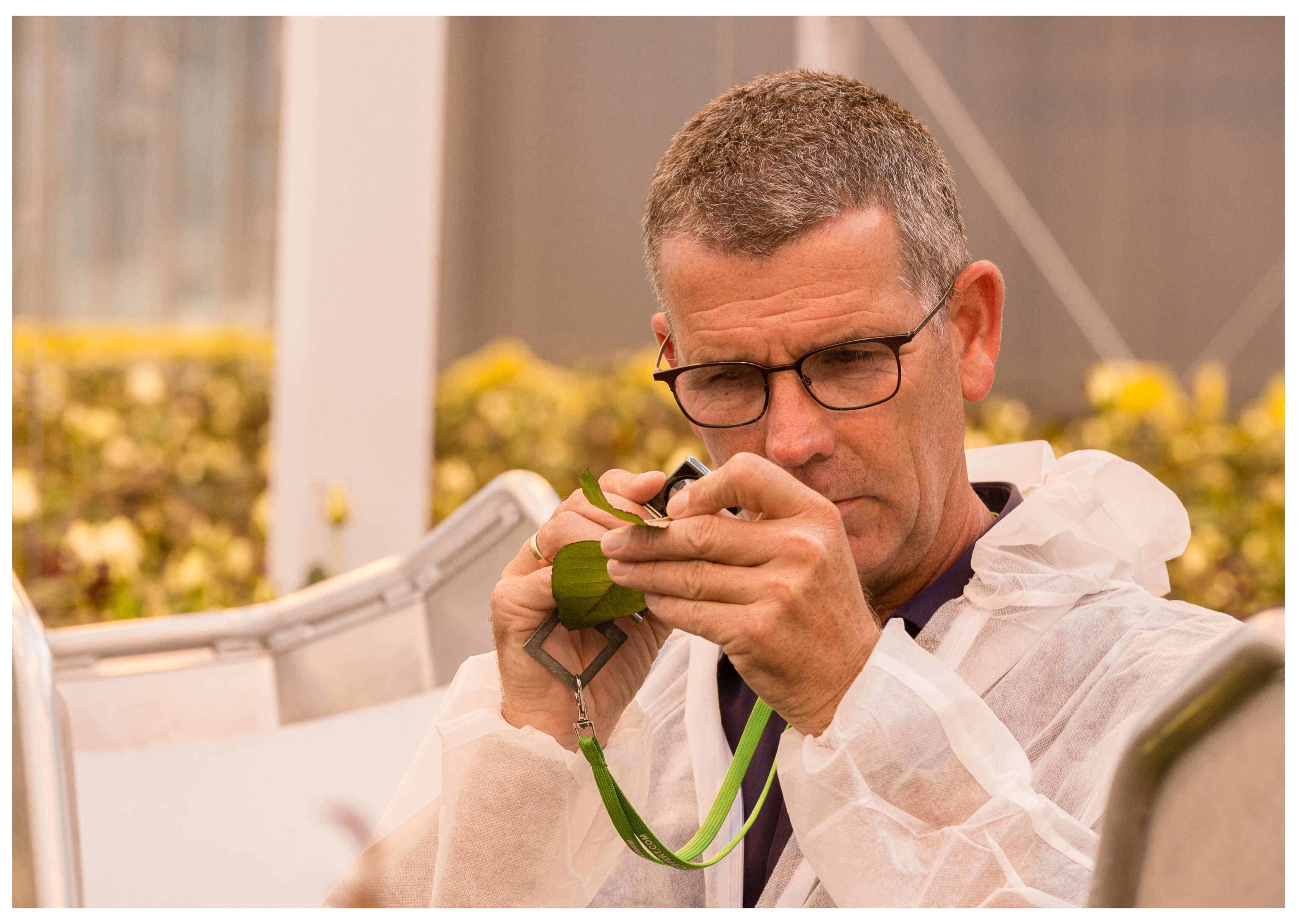 Op plekken waar een potentiële haard zou kunnen ontstaan, worden ook zakjes met Montdo-Mite uitgehangen. Dit is de roofmijt Transeius montdorensis. Peter: "Verder hebben we in onze nieuwste kas, van twee maal 4,3 hectare, een regenleiding onderin het rozenbed aangelegd. Met water waaraan een middel op basis van Beauveria bassiana is toegevoegd, houden we het afgevallen blad nat. De werkzame schimmel in dat product draait de tripspoppen de nek om. Zo voorkomen we een besmetting vanaf de grond."