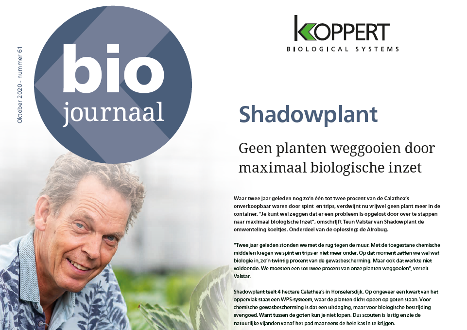 Ontvangt u het Biojournaal niet, maar wilt u dat wel ontvangen? Stuur dan een email met uw complete adresgegevens naar communicatie@koppert.nl.
