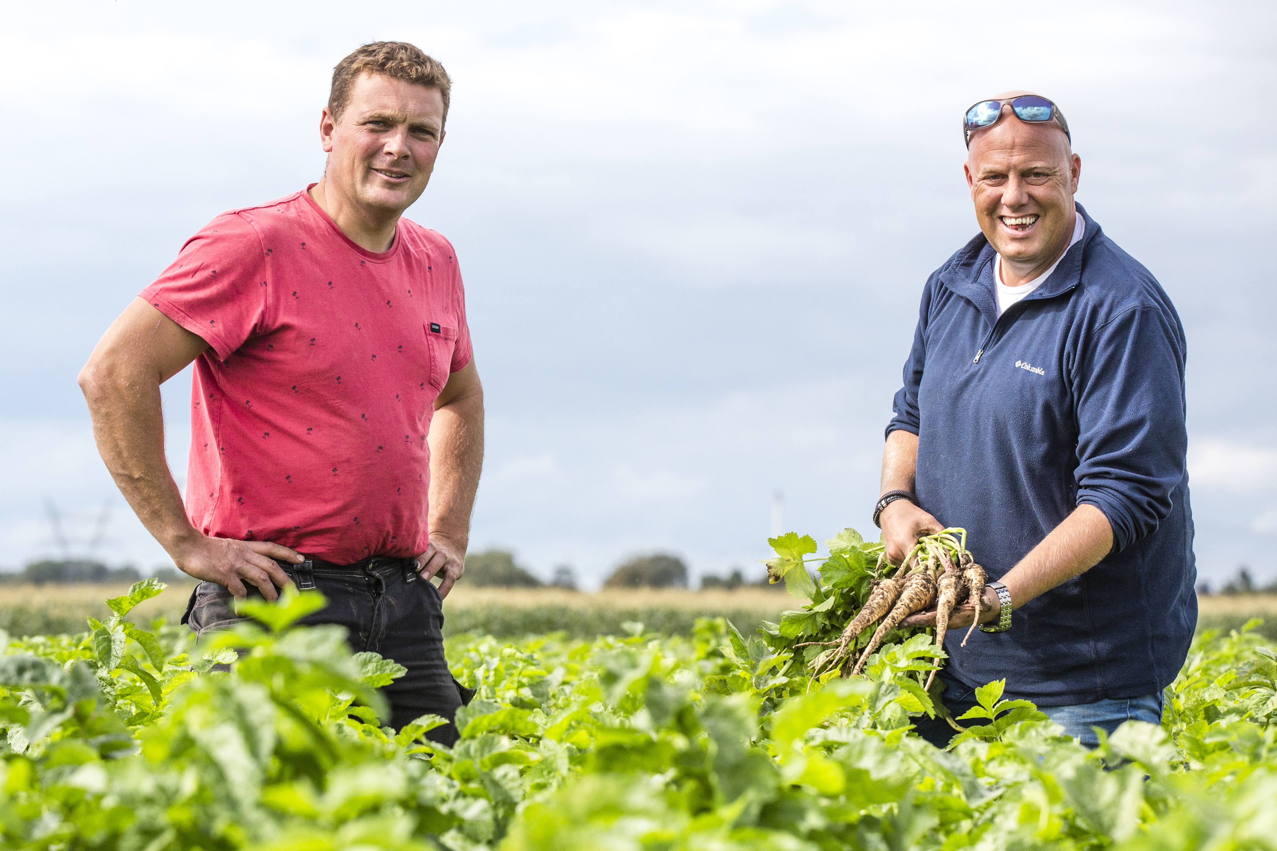 Koen de Bruycker (links) en Frank Druyff in de biologische pastinaken