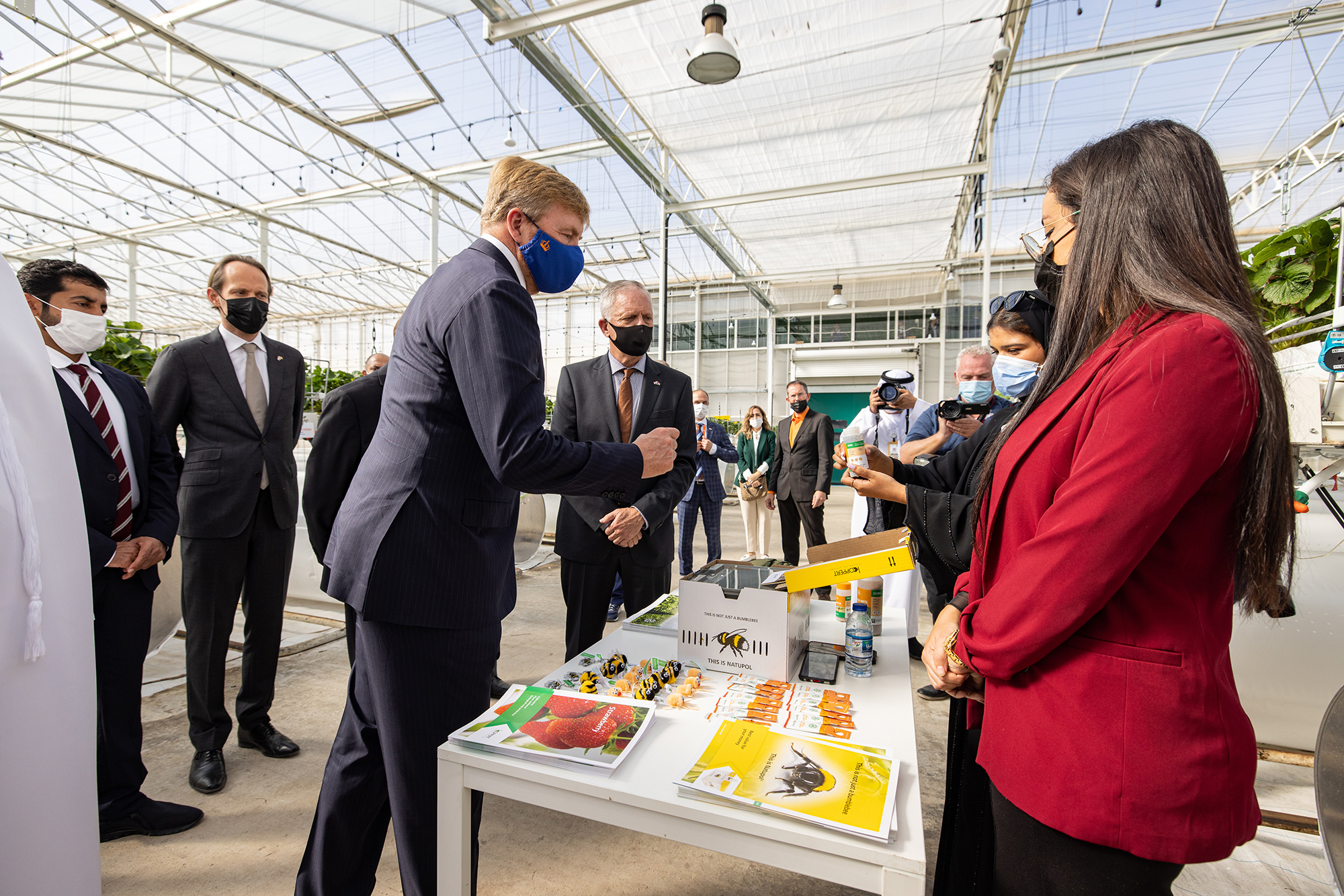 Henri Oosthoek, CEO van Koppert, heeft woensdag koning Willem-Alexander en koningin Máxima ontmoet tijdens een officieel bezoek aan de hightech kas van Pure Harvest in de Verenigde Arabische Emiraten. Het bezoek van het koningspaar viel samen met de Nederlandse nationale dag tijdens de World Expo 2020 in Dubai.