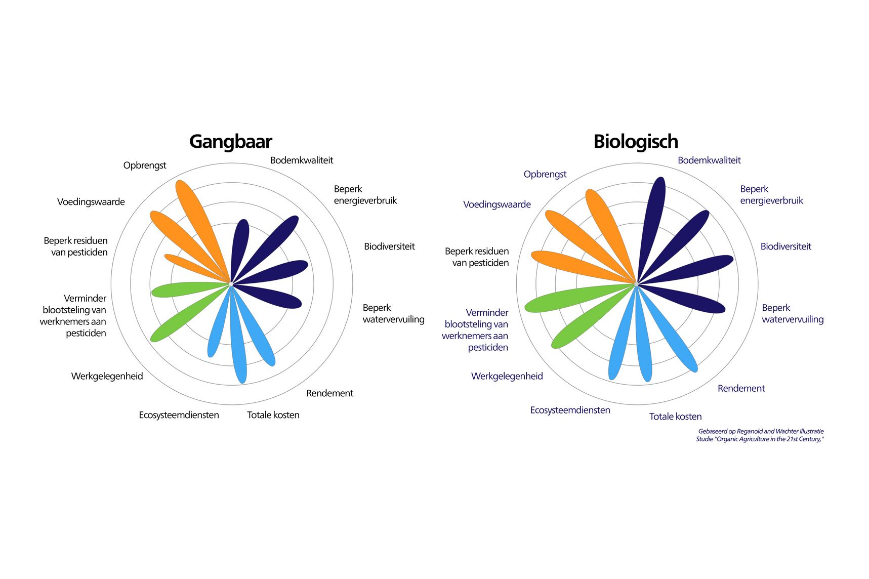 Bron: Organic agriculture in the twenty-first century, JP Reganold and JM Wachter, Nature Plants, Vol 2, February 2016.