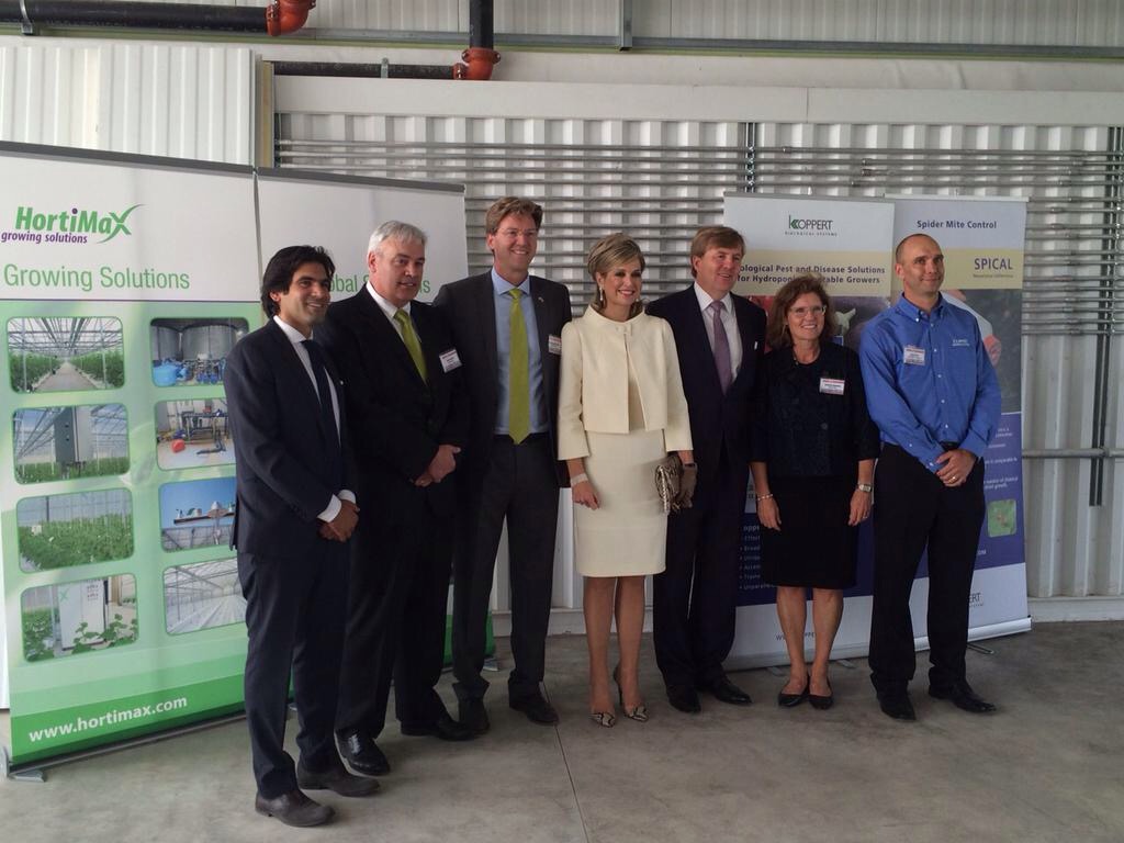 Diverse bedrijven mochten hierbij zijn, waaronder Koppert. Onze collega René Ruiter, general manager van onze vestiging in de Verenigde Staten, gaf een toelichting op de toepassingen van Koppert bij het innovatieve bedrijf. Minister Edith Schippers (Volksgezondheid) begeleidde het Koninklijk paar.