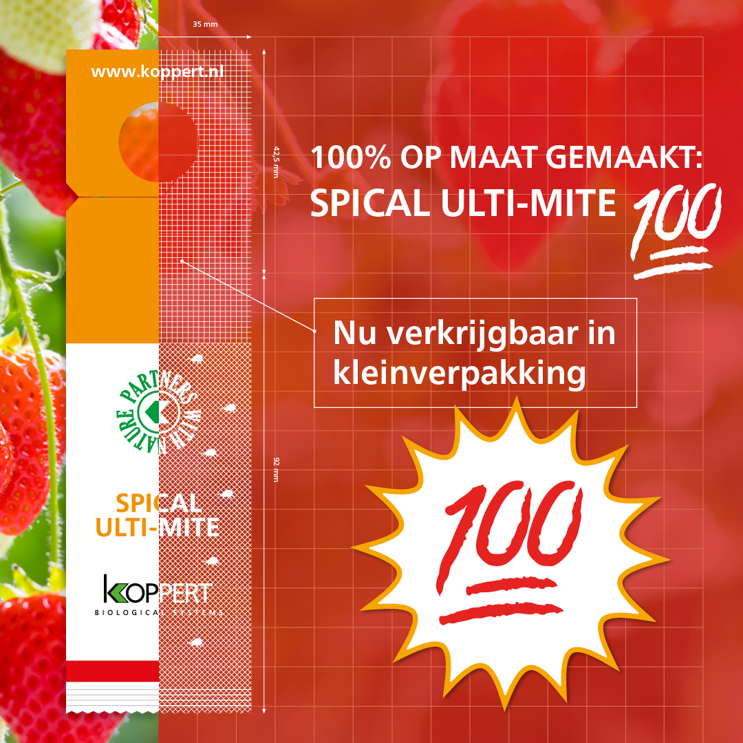 De stand van Koppert is dit jaar uitgebreid met een Innovation Quarter waarin een 'kroonjuweel' wordt belicht. Deze keer staan de schijnwerpers gericht op de zakjes van de Spical Ulti-Mite . 'We willen de bezoekers te vertellen over de verbeterde prestaties van het sachet’, aldus Rianne Lek. Met de introductie van de nieuwe Spical Ulti-Mite heeft Koppert een revolutionaire upgrade op de markt gebracht, die zorgt voor een robuustere bestrijding van spint in groenten-, fruit- en siergewassen. De consultants van Koppert zijn in de stand aanwezig om bezoekers te laten zien hoe het nieuwe sachet zeer goed bestand is tegen droogte en vocht in kassen, onder plastic en in gewassen buiten. Dit gepatenteerde biocontrolesysteem is de perfecte omgeving voor de heilzame Neoseiulus californicus om zijn populatie vast te stellen. Spical Ulti-Mite presteert aanzienlijk beter dan de standaard sachets.