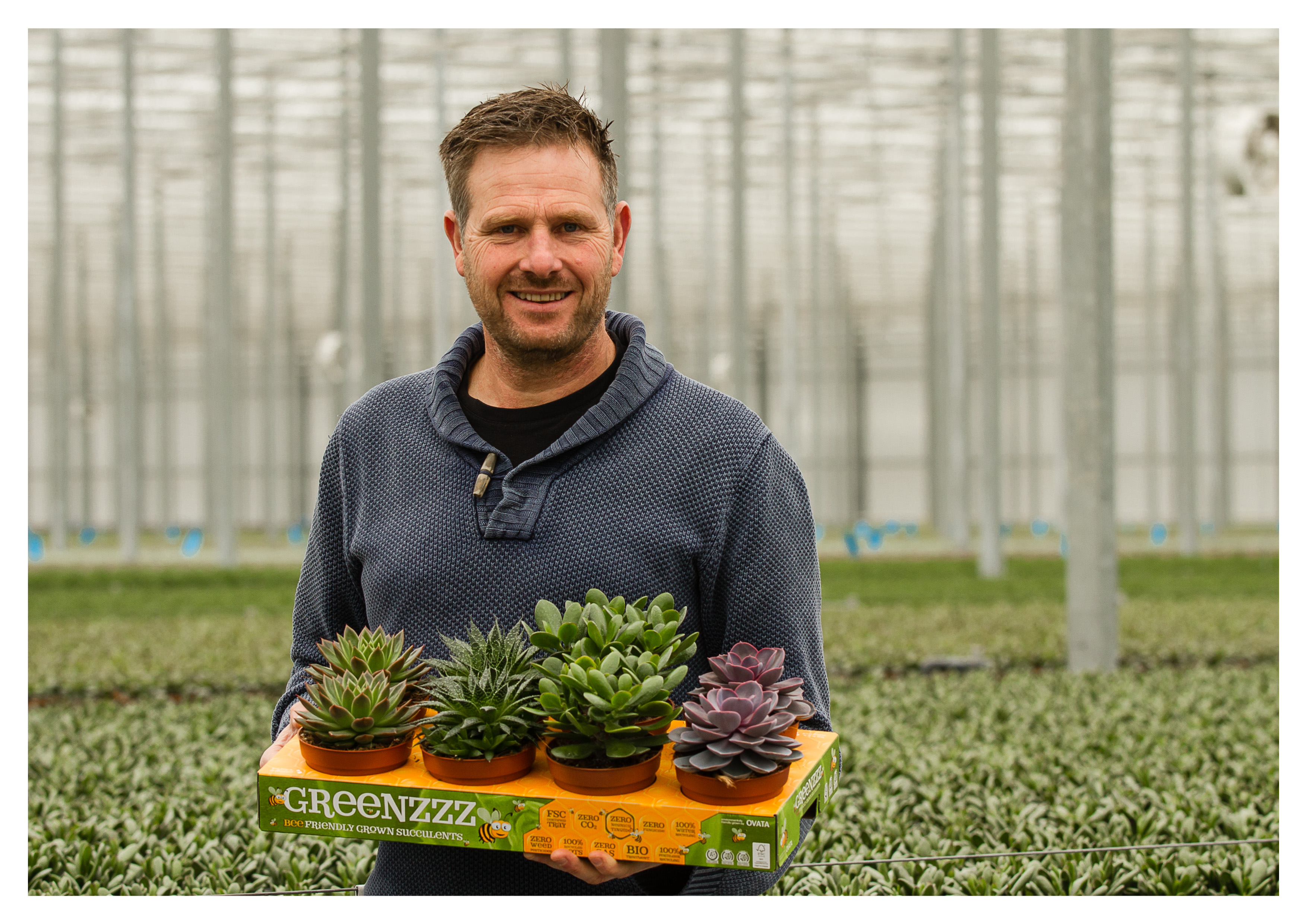 Aan de Hoefweg in Bleiswijk teelt Ovata op 7,2 hectare en met bijna dertig vaste medewerkers een vijftigtal succulenten. Via de aanbodsbanken PlantConnect en FloraXchange van Flora Holland en exporteurs vinden deze een weg naar bloemisten/winkeliers, tuincentra, cash & carries en retailketens in heel Europa. Elke week verlaten zo’n honderdduizend plantjes het bedrijf. OVATA voedt de commerciële databases van de marktpartijen dagelijks met het actuele aanbod. Met prijzen die een jaar gelden en een product met veel kwaliteit bedient het bedrijf vooral de hogere marktsegmenten. “Het zwaartepunt van onze afzet is Scandinavië”, vertelt eigenaar Hans Ammerlaan. “Hoe dat zo komt? Het klimaat daar kent uitersten en de dagen kunnen zowel heel kort als heel lang zijn. Binnenshuis wordt er ‘s winters veel gestookt en is de lucht erg droog. Succulenten zijn gewend aan extremen en aan sterk wisselende omstandigheden. Ze zijn sterk en de Scandinavische consument heeft er eigenlijk geen omkijken naar.”