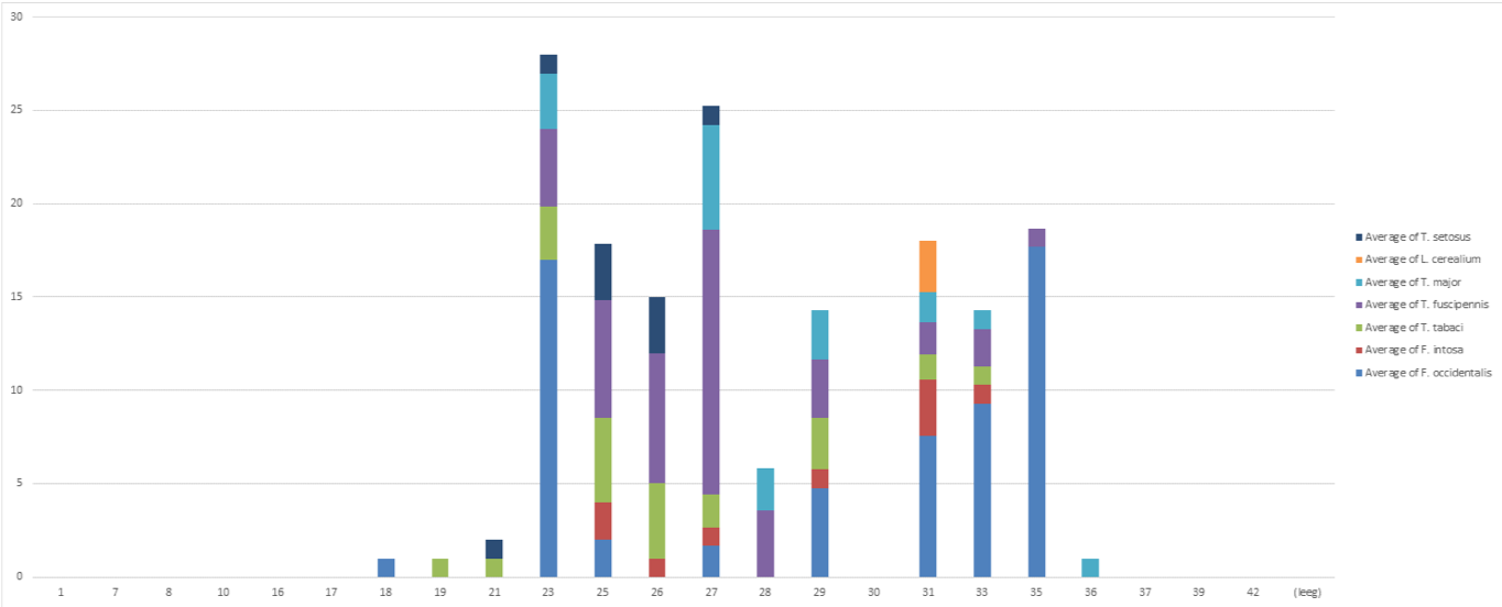 Elke aardbeiteler heeft er wel eens mee te maken; trips. Een ongewenste gast die we het liefst zo snel mogelijk opruimen. Maar waar hebben we het nou over als we praten over trips? Is het onweersbeestje wat ons op een warme nazomermiddag lastig valt dezelfde die we te lijf gaan in een aardbeigewas? Binnen Koppert Nederland hebben we hiervoor een determinatie laboratorium, dit levert ons een schat aan informatie op als het gaat om plagen en hun bestrijders. Afgelopen jaar hebben we in de aardbeiteelt in Nederland op diverse plaatsten trips gemonitord. Zie de grafiek hieronder.