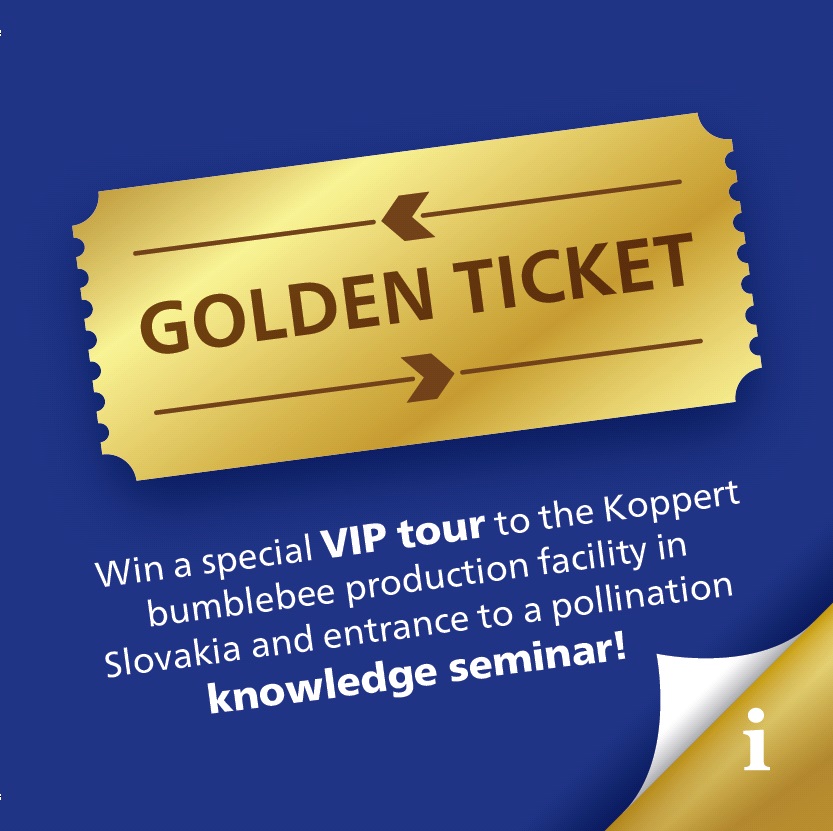 Koppert introduceert een speciale ‘Golden Ticket’-campagne als onderdeel van de lancering van de nieuwe Natupol-nestkasten. Met deze fotowedstrijd vragen we telers om een foto in te sturen van de nieuwe nestkasten in hun gewas. De winnaar krijgt de kans om een bezoek te brengen aan onze hommelproductiefaciliteit in Slowakije en deel te nemen aan een kennisseminar met een VIP-accommodatie in Hotel Château Béla.