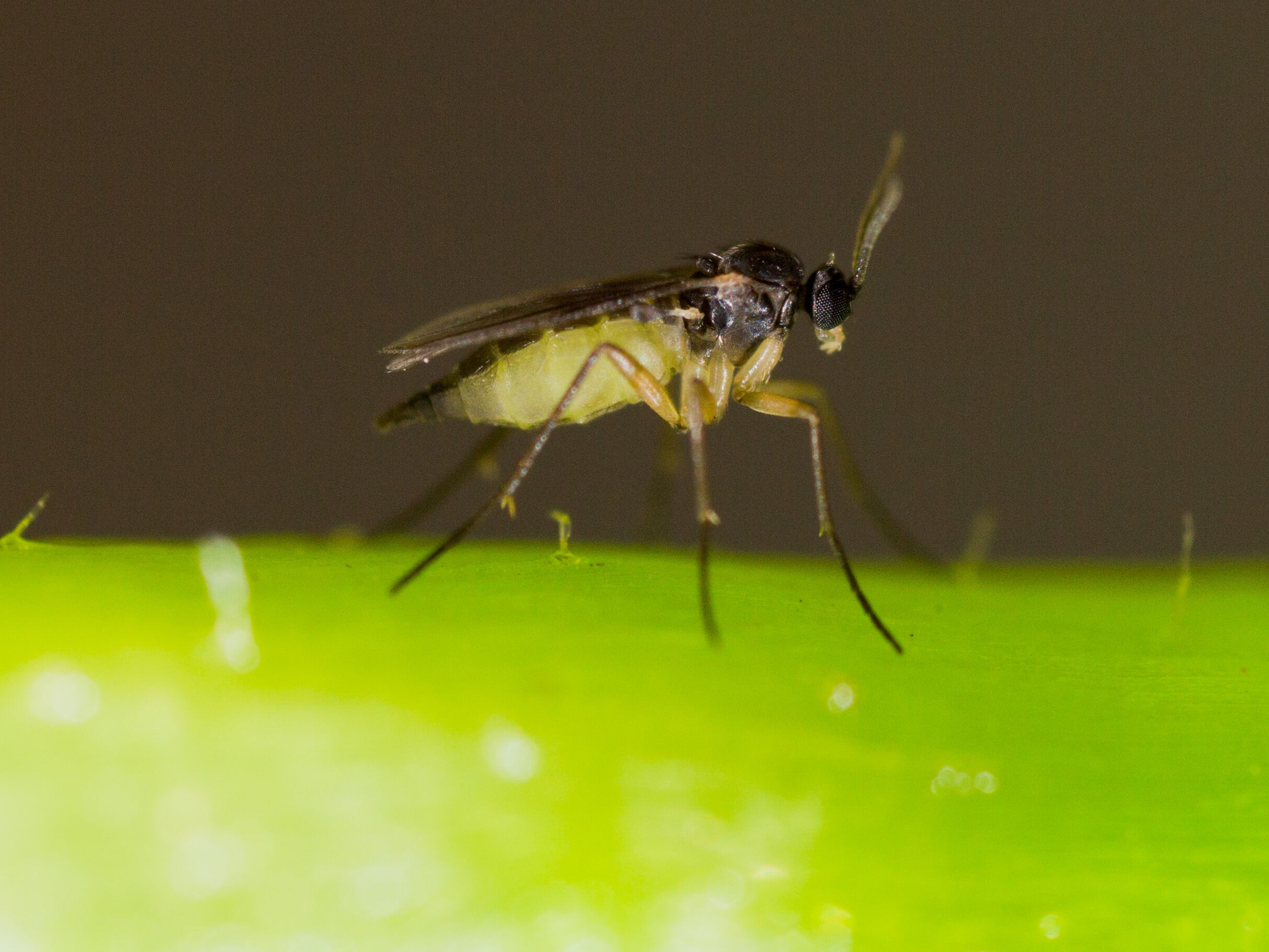 Wanneer de druk hoog is, bijvoorbeeld wanneer de opkweek in de kas plaatsvindt, is het advies om daarnaast ook preventief Macro-Mite toe te passen. Macro-Mite bevat de bodemroofmijt Macrocheles robustulus die ook de varenrouwmuglarven bestrijd. Door Horiver vangplaten preventief op te hangen kun je ook controleren hoeveel adulte varenrouwmuggen er aanwezig zijn en doelgerichter actie nemen.
