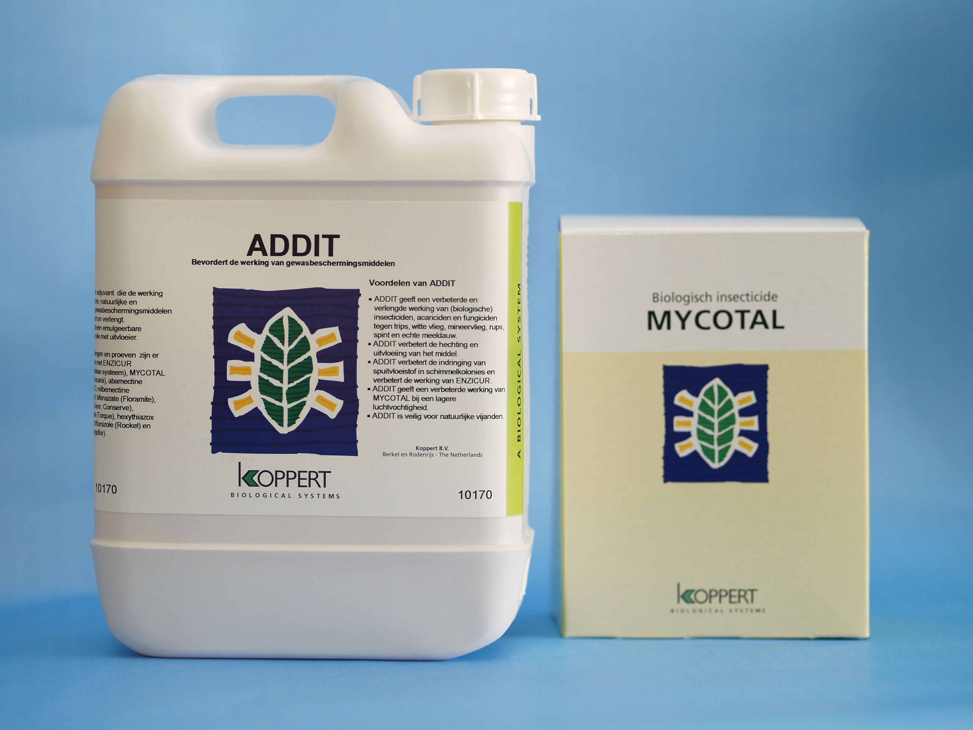 Vanwege de toenemende resistentie van witte vlieg tegen chemische gewasbeschermingsmiddelen is het belangrijk tijdig te corrigeren. Dit kan goed met Mycotal en Addit, tegen zowel de kaswittevlieg als tabakswittevlieg. Een bespuiting met Mycotal+Addit doodt een groot deel van de wittevliegeieren en larven, zonder de aanwezige bestrijders te doden. Er is zelfs een flink neveneffect op spint.