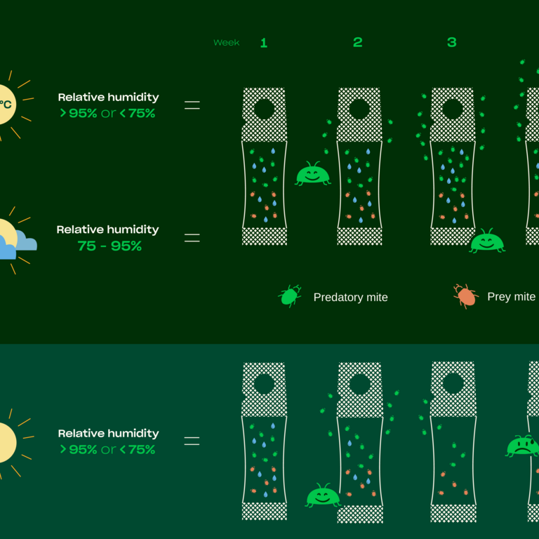 De waterbestendige folie die gebruikt wordt voor Ulti-Mite opent nieuwe mogelijkheden voor de bescherming van buitenteelten, zoals de citrusteelt. De innovatieve verpakking zorgt voor een stabiele en betrouwbare plaagbestrijding en presteert beter dan vergelijkbare producten in suboptimale klimaten. Of u nu paprika's, aardbeien, meloenen of citrusvruchten teelt, in tunnels of open velden, of in constant vochtige omgevingen. Het gepatenteerde systeem beschermt roofmijten tegen zowel overmatig vocht als uitdroging en zorgt zo voor een succesvolle geïntegreerde gewasbescherming onder de meest uitdagende omstandigheden.
